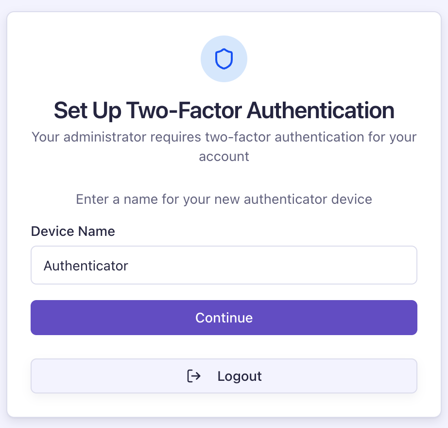 After logging in with MFA enabled, you are prompted to set up a TOTP device.